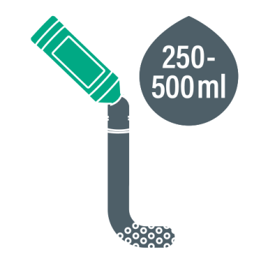 AbflussTaurus® langsam in den betroffenen Abfluss einfüllen. Der Reiniger verteilt sich selbstständig im Rohrsystem und erreicht auch tieferliegende Bereiche.