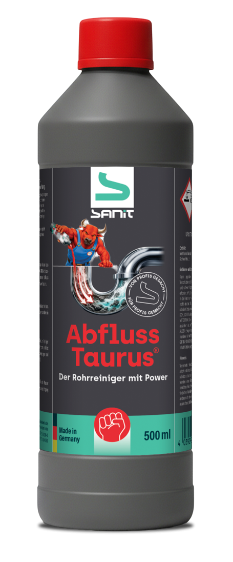 Entwickelt wurde der AbflussTaurus® von SANIT-CHEMIE, einem Unternehmen mit langjähriger Erfahrung in der professionellen Rohr- und Abflussreinigung. Neben seiner hohen Reinigungsleistung überzeugt der AbflussTaurus® durch Materialverträglichkeit gegenüber gängigen Rohrmaterialien und Kläranlagentauglichkeit. Zudem ist der Reiniger nicht von den Beschränkungen der EU-Verordnung (EU) 2019/1148 in Verbindung mit dem Ausgangsstoffgesetz betroffen. Damit kann der AbflussTaurus® sowohl von professionellen Anwendern eingesetzt als auch vom Handwerker an Endkunden verkauft werden.
